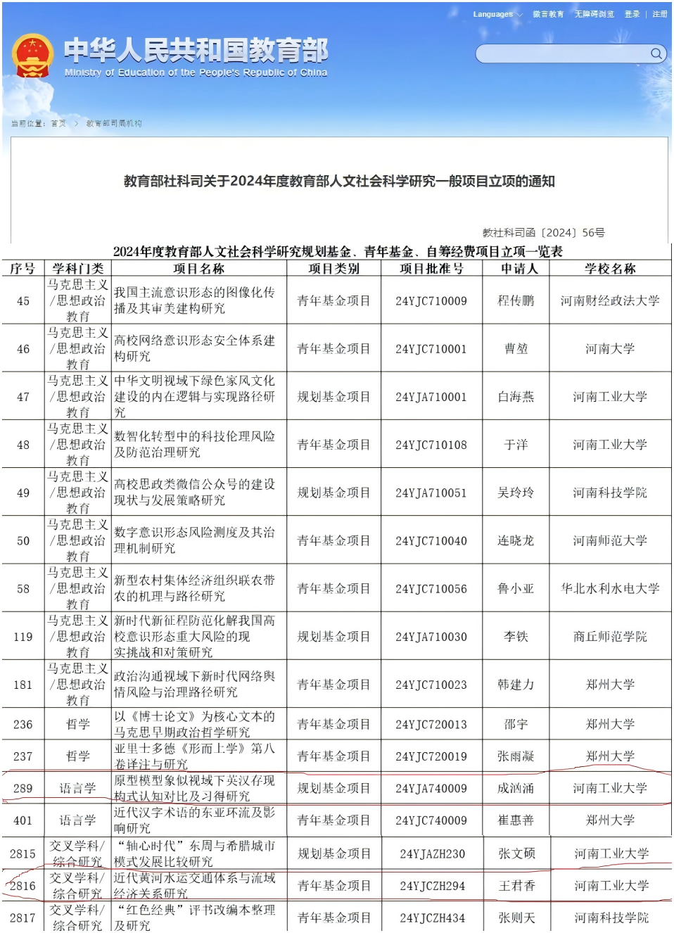 近日,教育部社科司发布了《关于2024年度教育部人文社会科学研究一般项目立项的通知》,星空体育