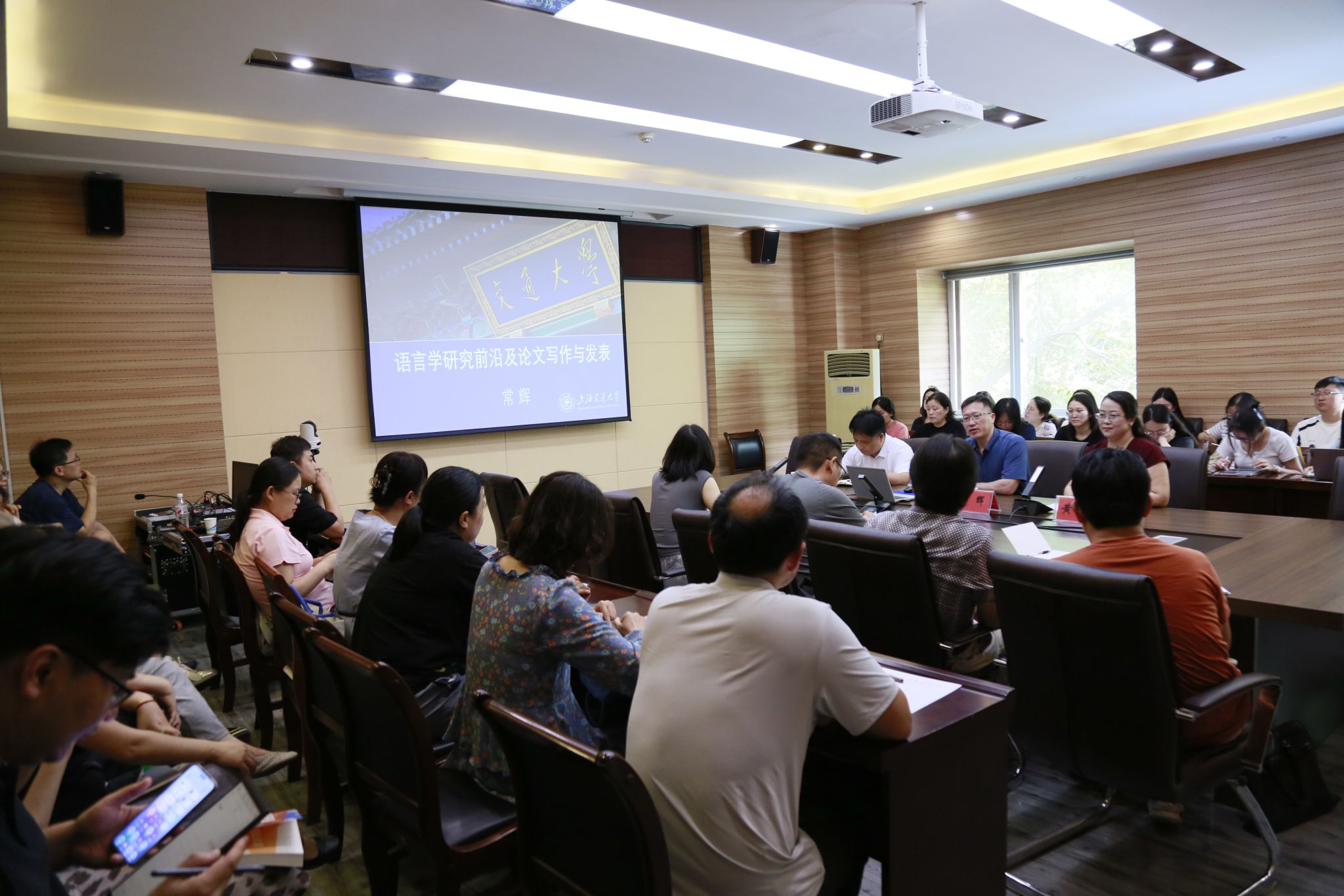 6月20日下午,上海交通大学常辉教授应邀做客星空体育 ,在5231会议室作“语言学研究前沿及论文写作与发表”专题讲座。讲座由院长黄辉辉教授主持,星空体育 班子成员、学科骨干、青年教师及研究生共同聆听。