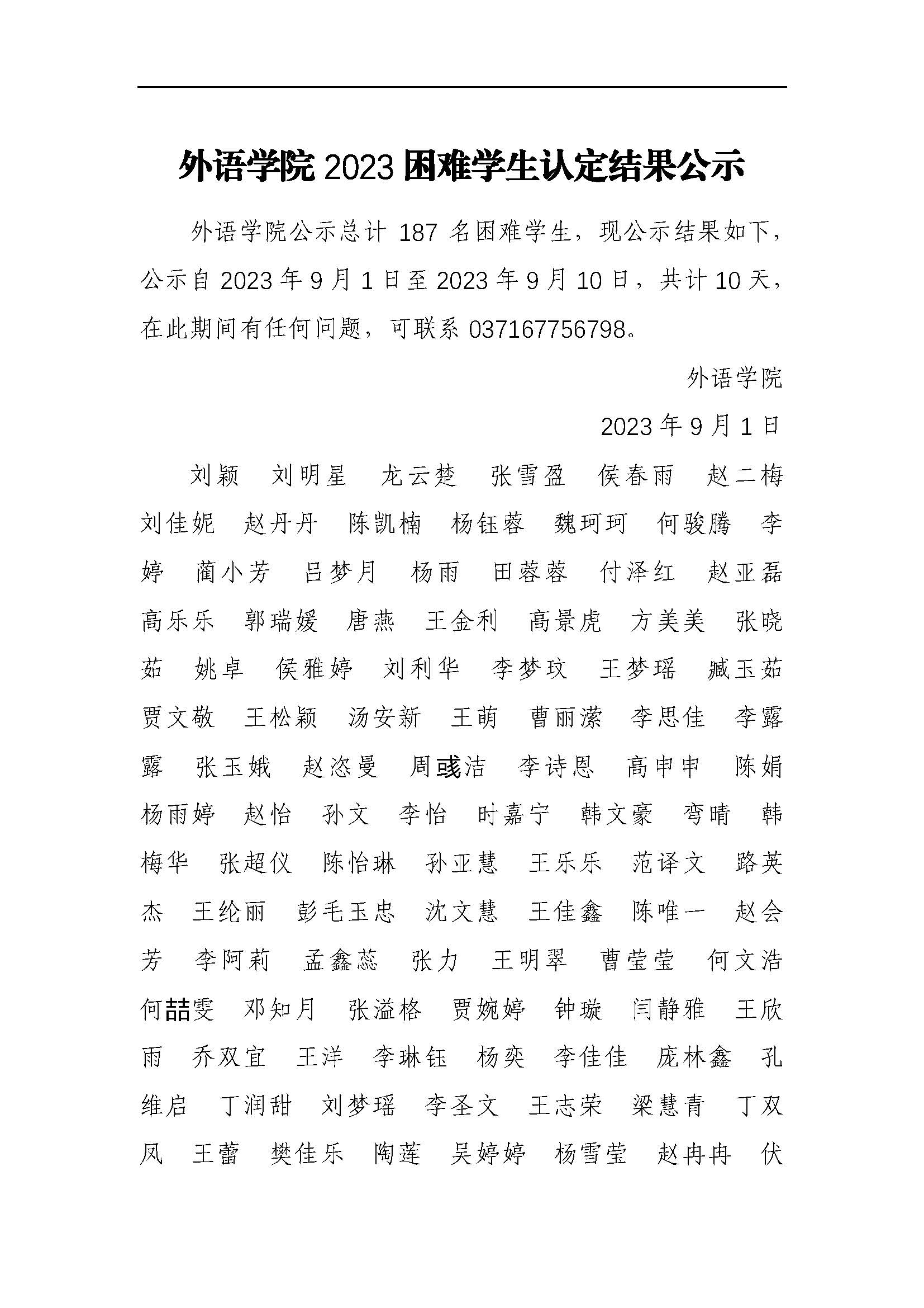 星空体育 2023年家庭经济困难学生认定结果公示