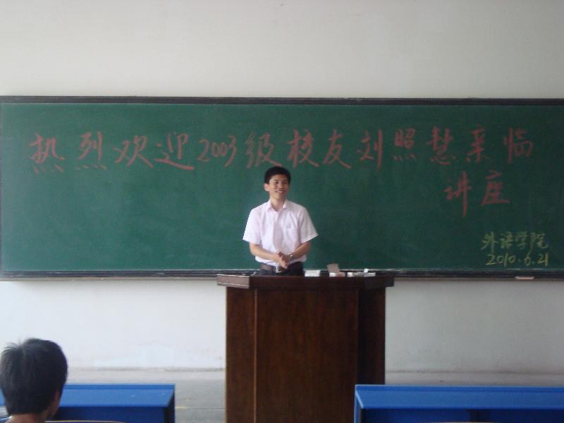 最后,张华老师对校友刘照慧的精彩演讲和真诚交流做了高度的评价与总结,要求同学们以刘照慧为榜样,不断提高自身综合素质,再接再厉,努力实现自身的社会和个人价值,