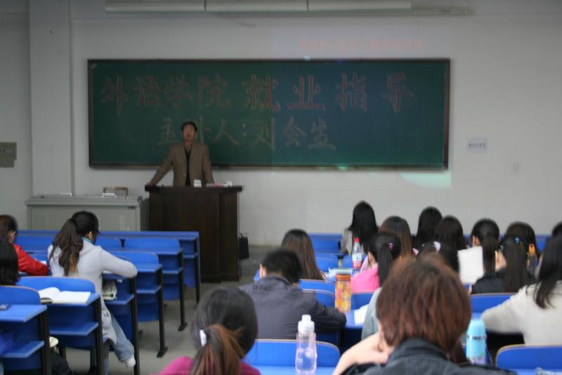纪委刘会生老师在4438教室为2011届毕业生进行就业指导。刘老师针对“如何判断就业陷阱和安全就业”、“如何处理就业合同纠纷”等内容做了专题讲座。全体07级和部分08级同学参加了此次讲座。