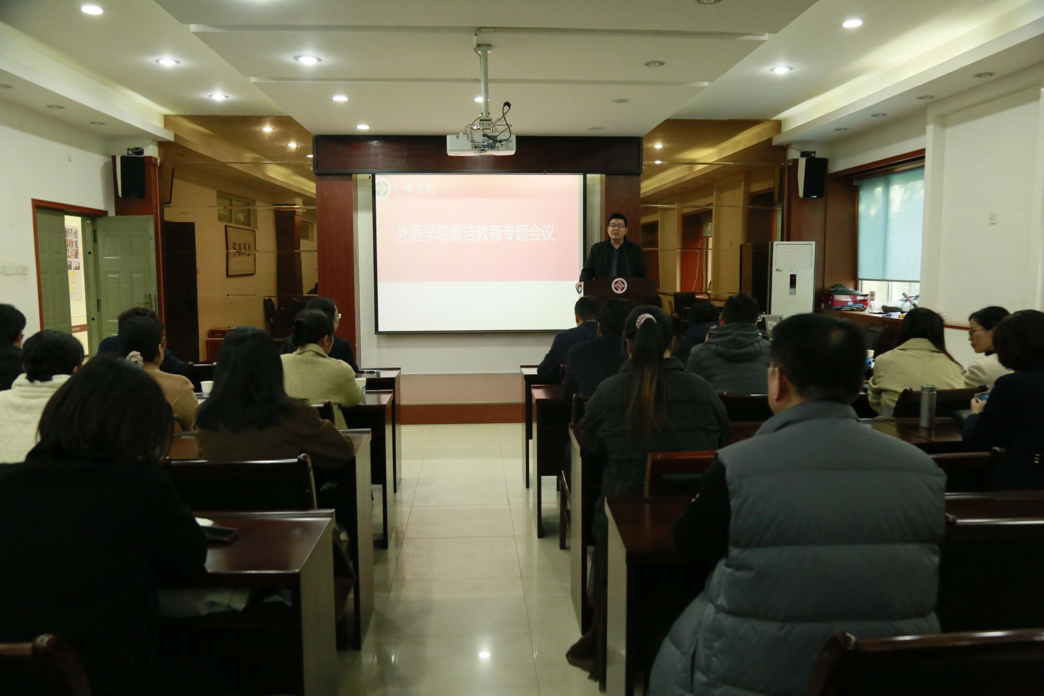 王晓东结合近期发生在高校教育系统的几个典型案例,进行以案说纪,要求全体党员干部要以案为鉴、以案明纪,进一步坚定理想信念、严格遵纪守法,严守底线、不踩红线、不碰高压线,做到干净干事、担当作为。他强调,各党支部、各系(部)、各科室要切实扛牢党风廉政建设责任,通过“三会一课”等形式做实做细廉洁教育,强化日常监督,积极营造风清气正的干事创业环境。