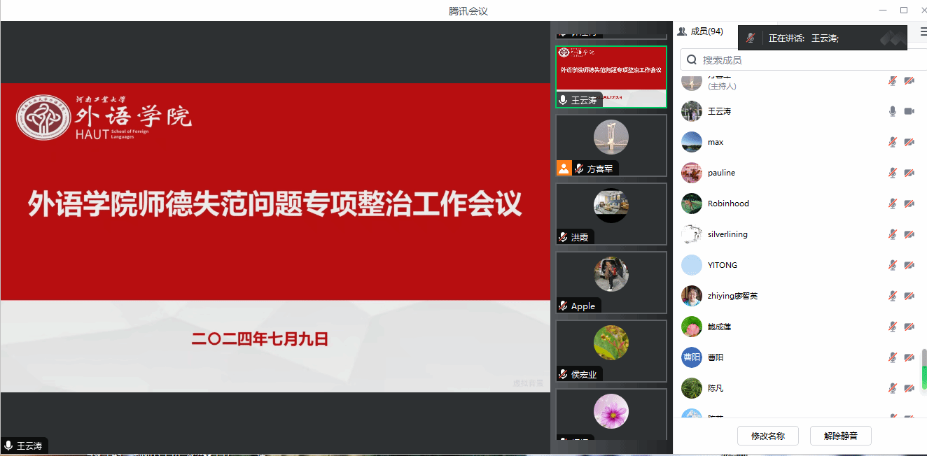 召开师德失范问题专项整治工作会议。会议由院党委书记王云涛主持,全体教职工参会。
