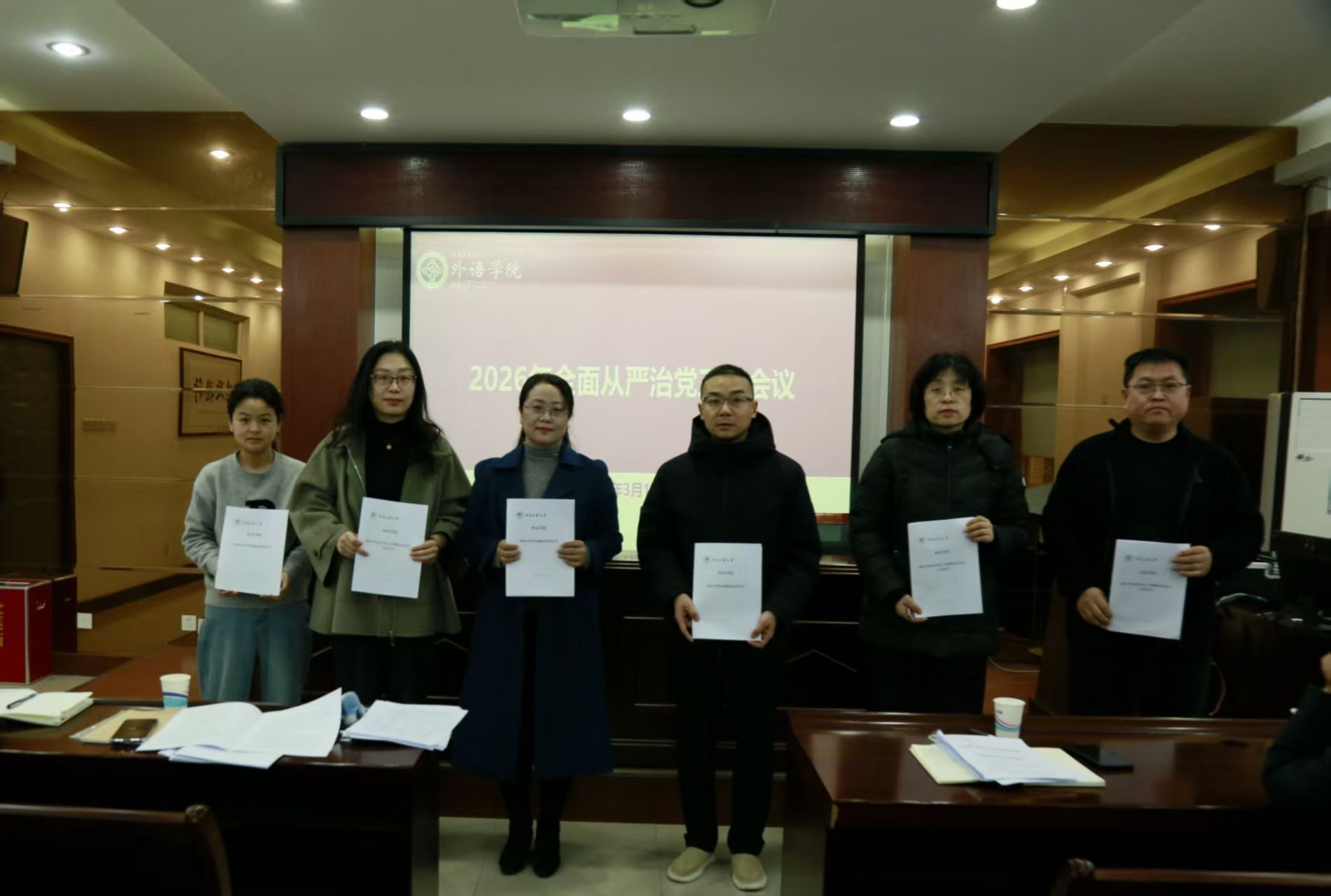 在5225会议室召开全面从严治党工作会议,全体教职工参会。会议由星空体育