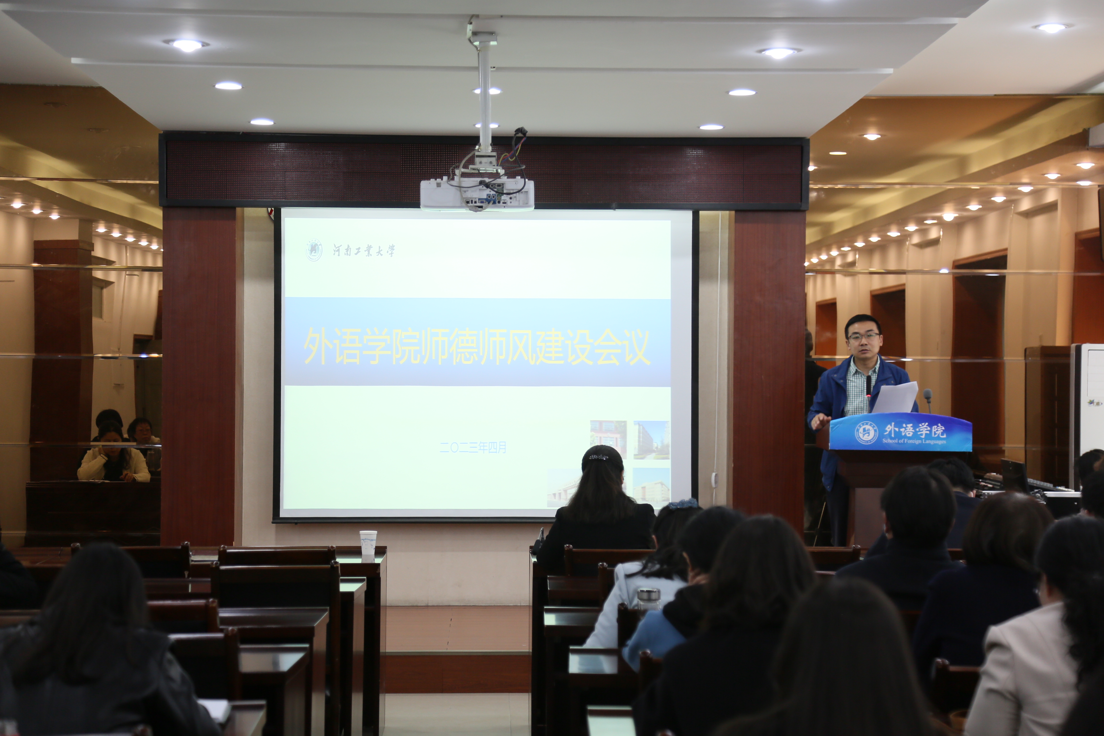 全体党员、全体教职工参会。会议由院长黄辉辉主持。