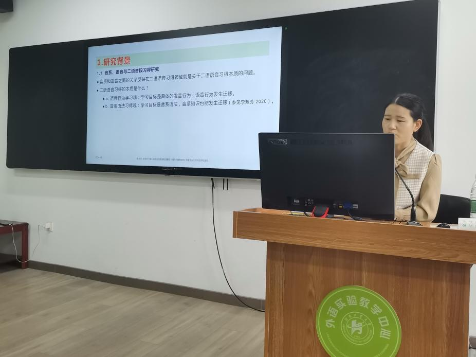 天津师范大学李芳芳博士带来第一讲,她围绕中国学习者在二语英语浊音习得方面的不对称现象进行深入分析,她指出尽管汉语缺乏清浊对立的[浊音性]特征,学习者仍能学会这一特征并在英语中区分清浊擦音,但浊塞音的习得难度明显大于浊擦音。此研究凸显了音系迁移机制的复杂性以及学习者抑制母语负面影响的必要性,强调了二语习得是主动构建目标语言音系规则的过程,而非单纯模仿。