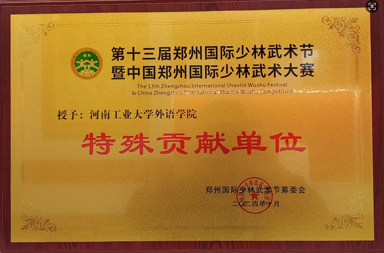 被筹委会授予第十三届郑州国际少林武术节特殊贡献单位。