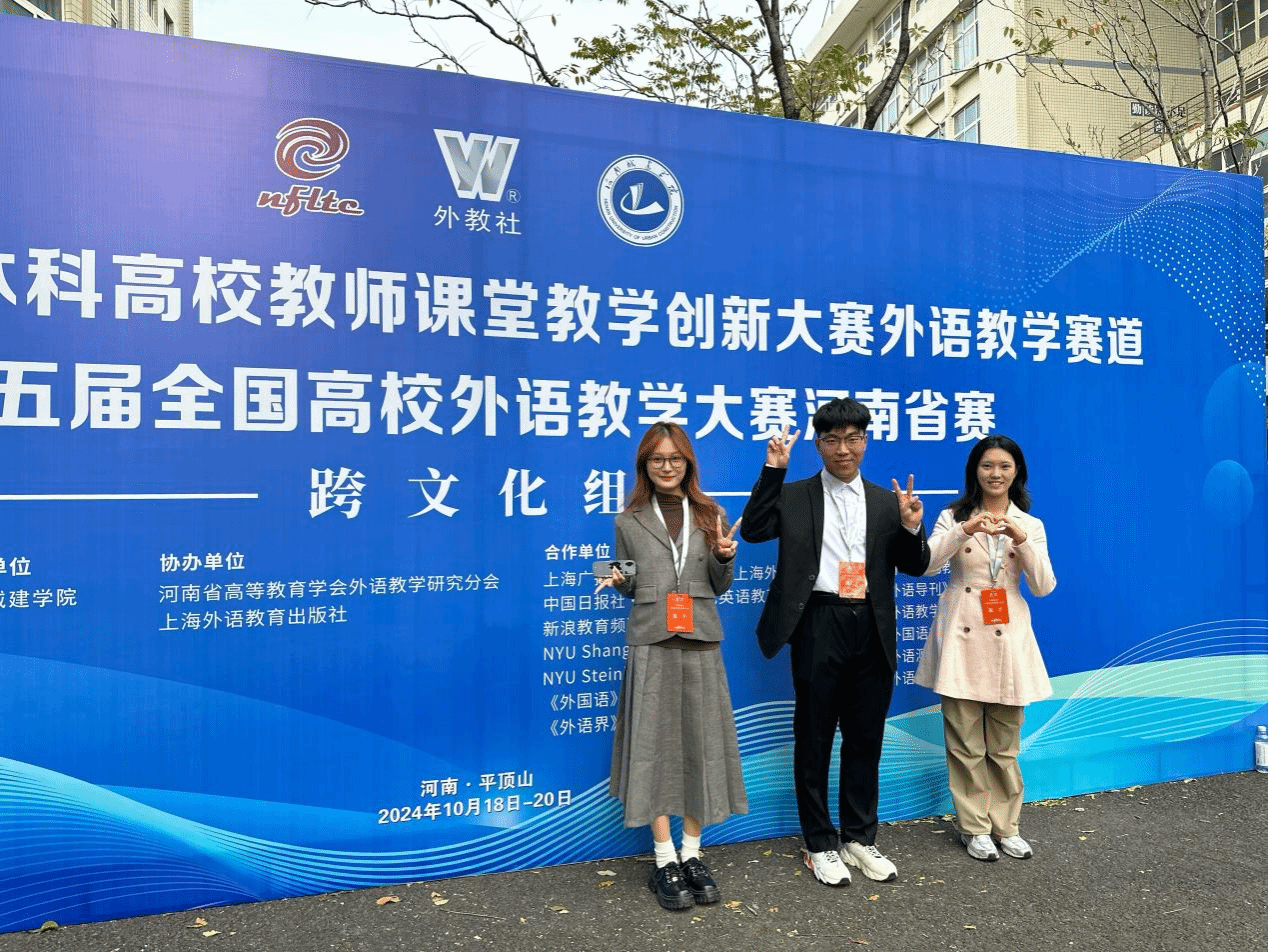 本科生张雨涵三名同学组成的跨文化团队荣获河南省一等奖。