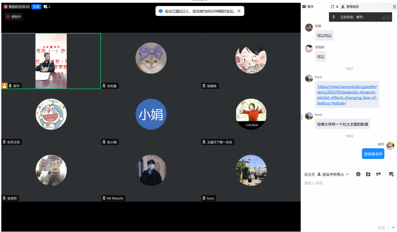 活动中,曹阳老师深入剖析了用英语讲述中国故事的技巧要点,并从演讲主题选择、中国元素融入和跨文化表达三个维度进行专业指导,最后结合实战经验,详细讲解了演讲技巧和注意事项。在交流环节中,师生们就如何更深入地理解中国,用英语表达中国、在国际舞台上传播中国声音展开热烈讨论。