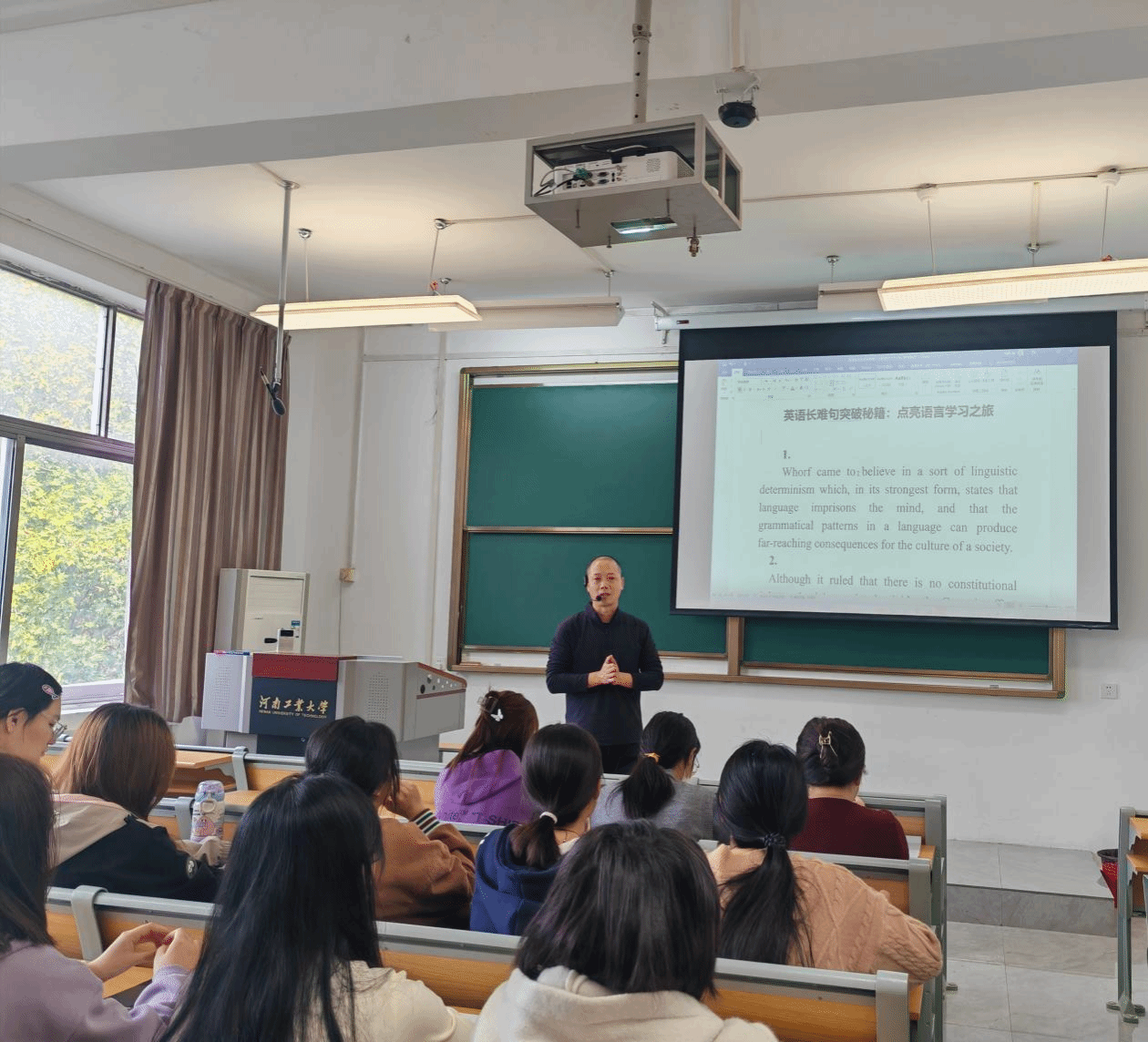 活动中,崔琦超老师深入剖析了英语学习中的长难句问题,通过分析句子主干,对学生在长难句语法结构、语句含义理解等方面进行了专业指导。旨在帮助学生增强了英语语法能力,提高了英语阅读水平。