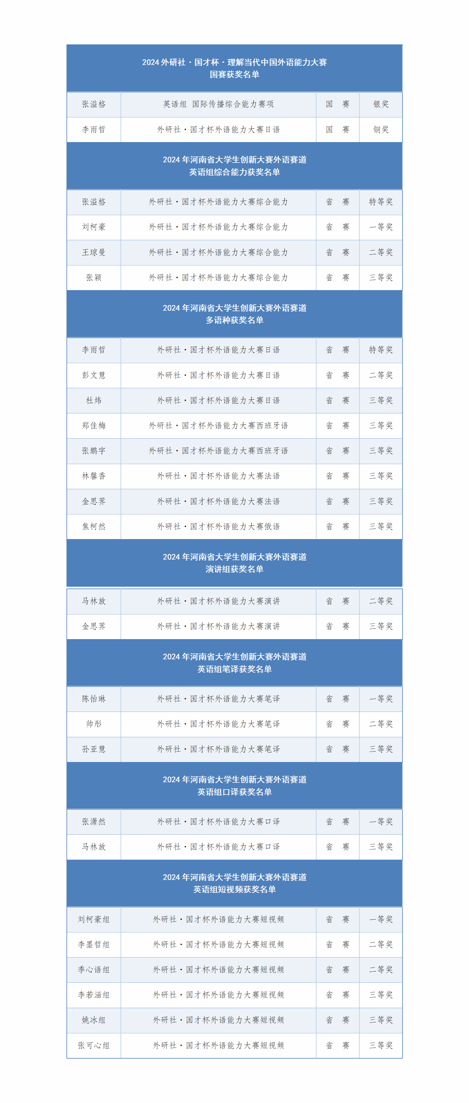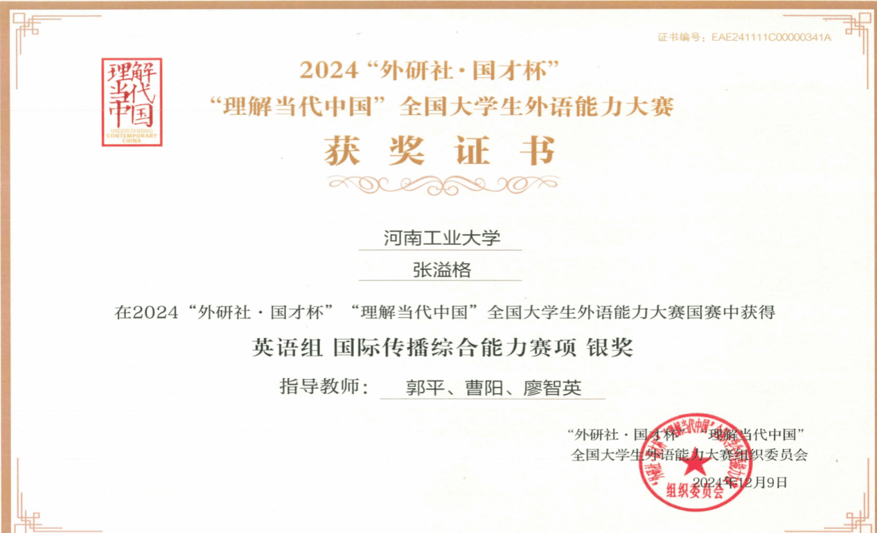 学子凭借扎实的专业技能和素养,在各语种专业指导团队的悉心指导下,荣获国赛银奖1项、铜奖1项以及省赛奖项25项,获奖人数创历史新高,语种涵盖英语、日语、俄语、西班牙语和法语。