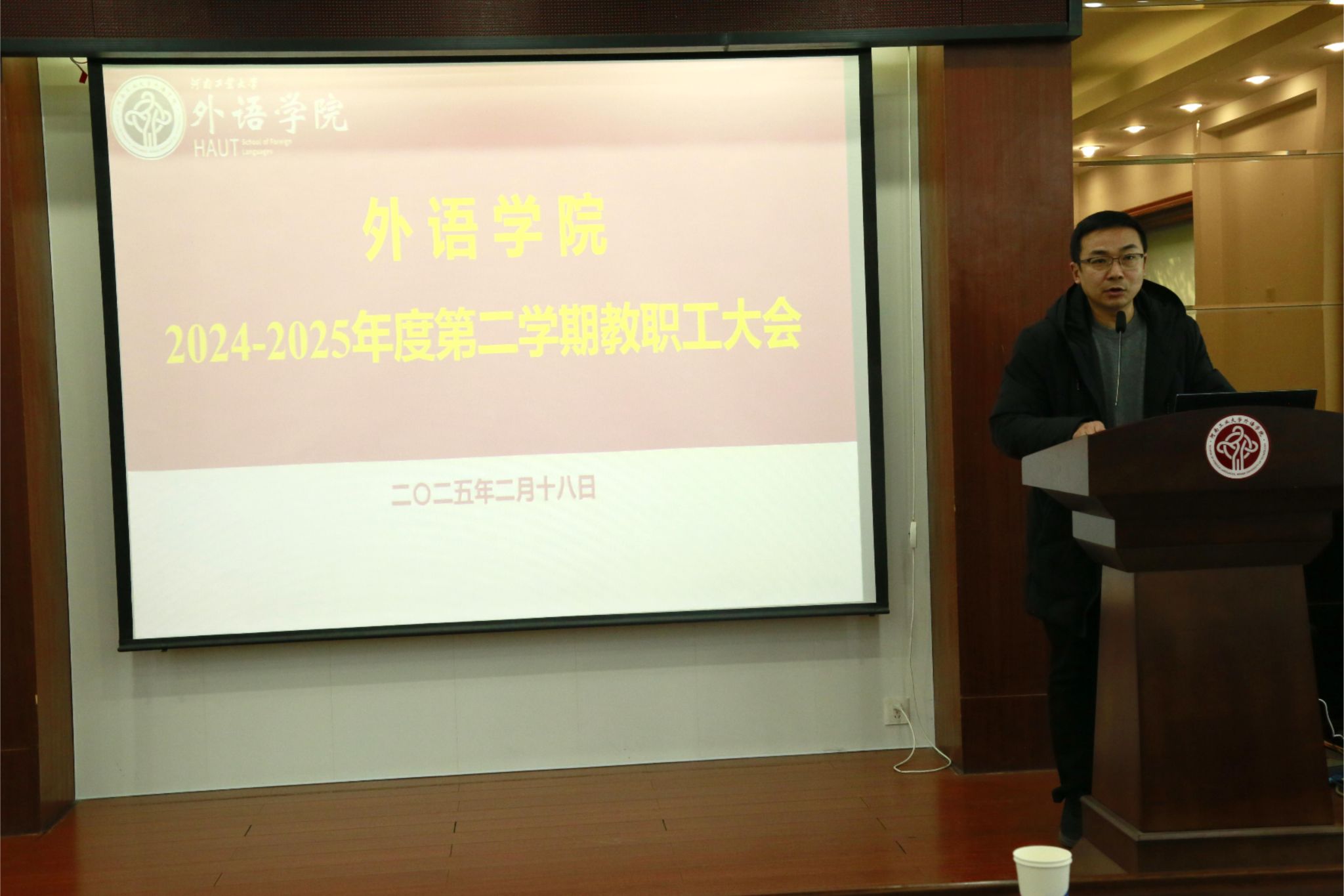 在5225会议室召开2024—2025年度第二学期全体教职工大会,传达学习星空体育