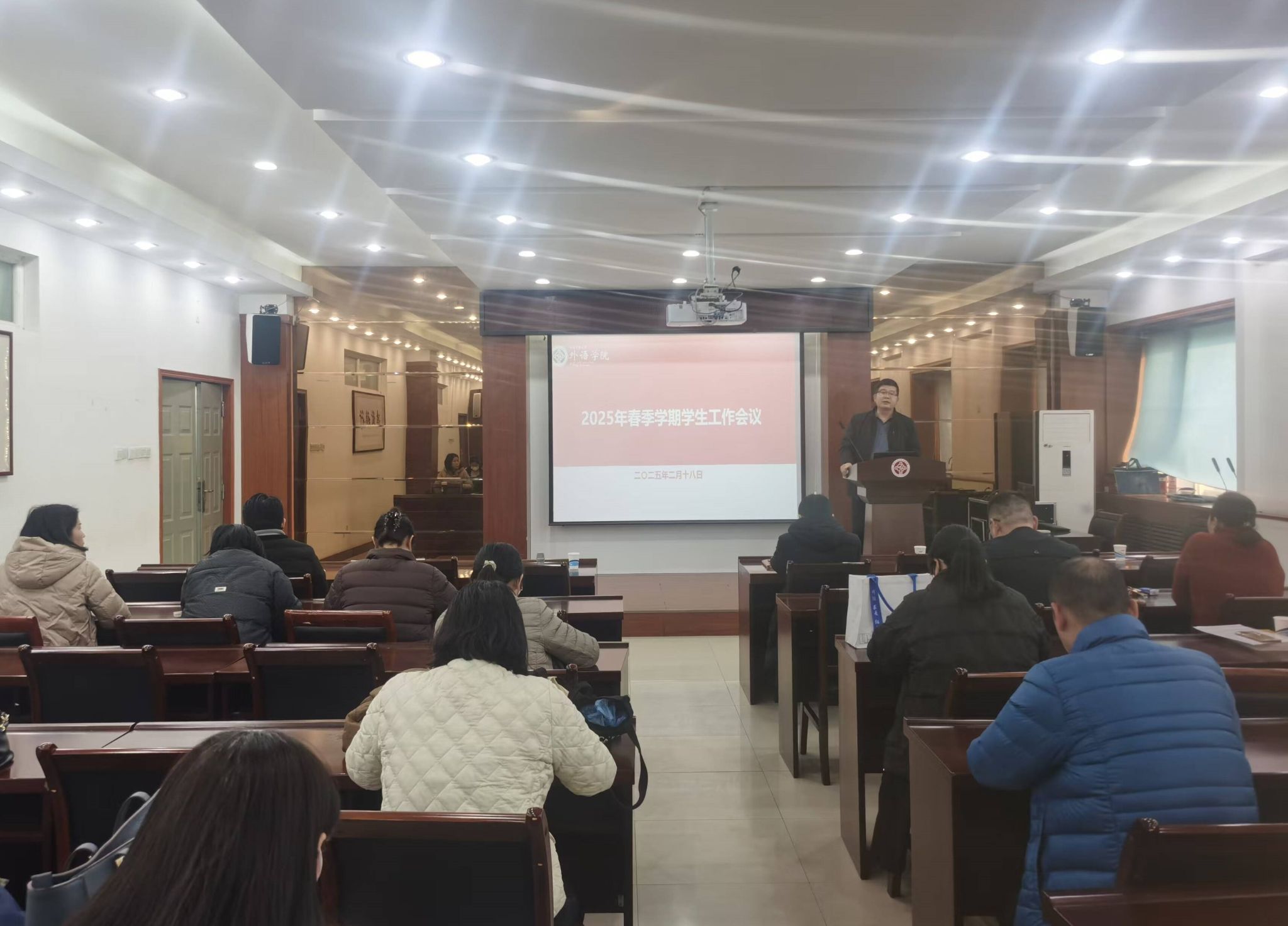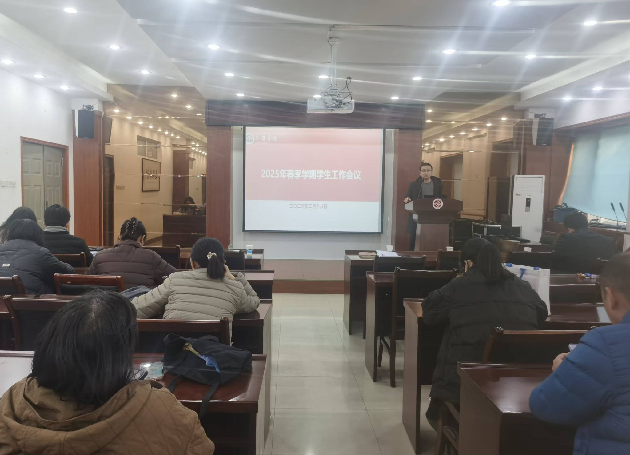 在5225会议室召开春季学期学生工作会议,安排部署本学期重点工作。院党委书记王云涛,院党委副书记王晓东,全体班主任、辅导员参加了会议。会议由王晓东主持。