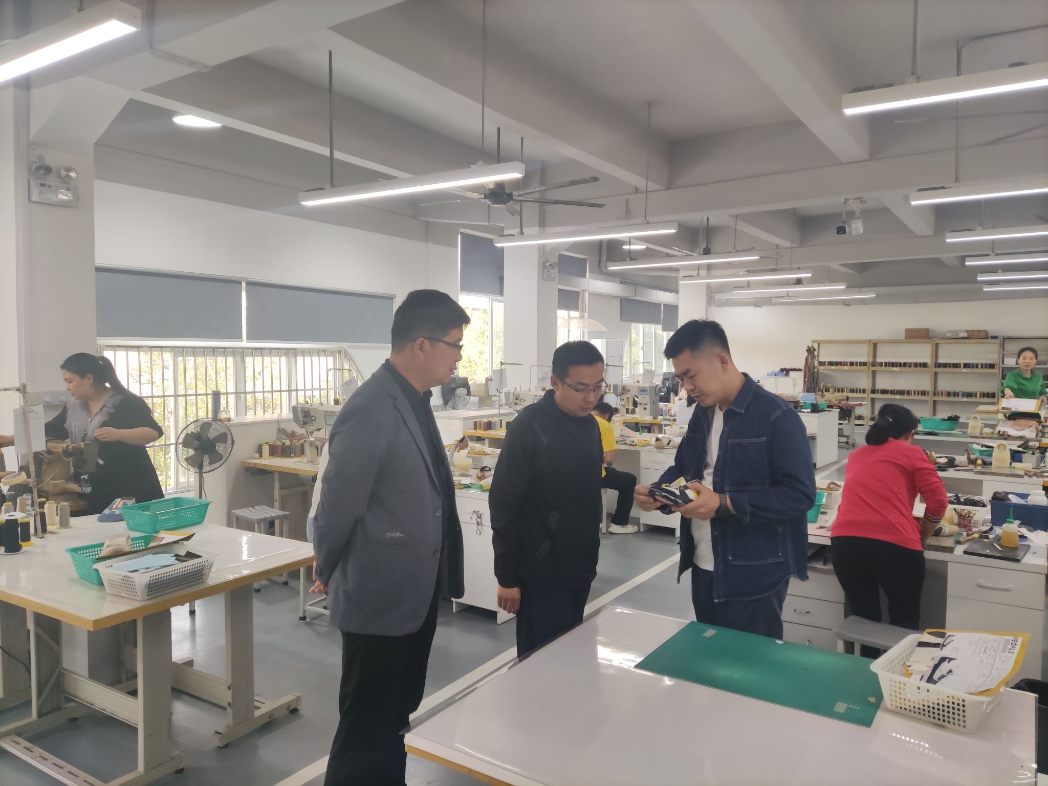 王云涛一行先后走访了东莞市宾宝鞋业有限公司、东莞声宝鞋业有限公司等多家企业,实地参观企业原料区、生产车间、研发设计中心、样品展览区等,深入了解企业业务领域、发展现状、工作环境、人才需求及行业趋势。