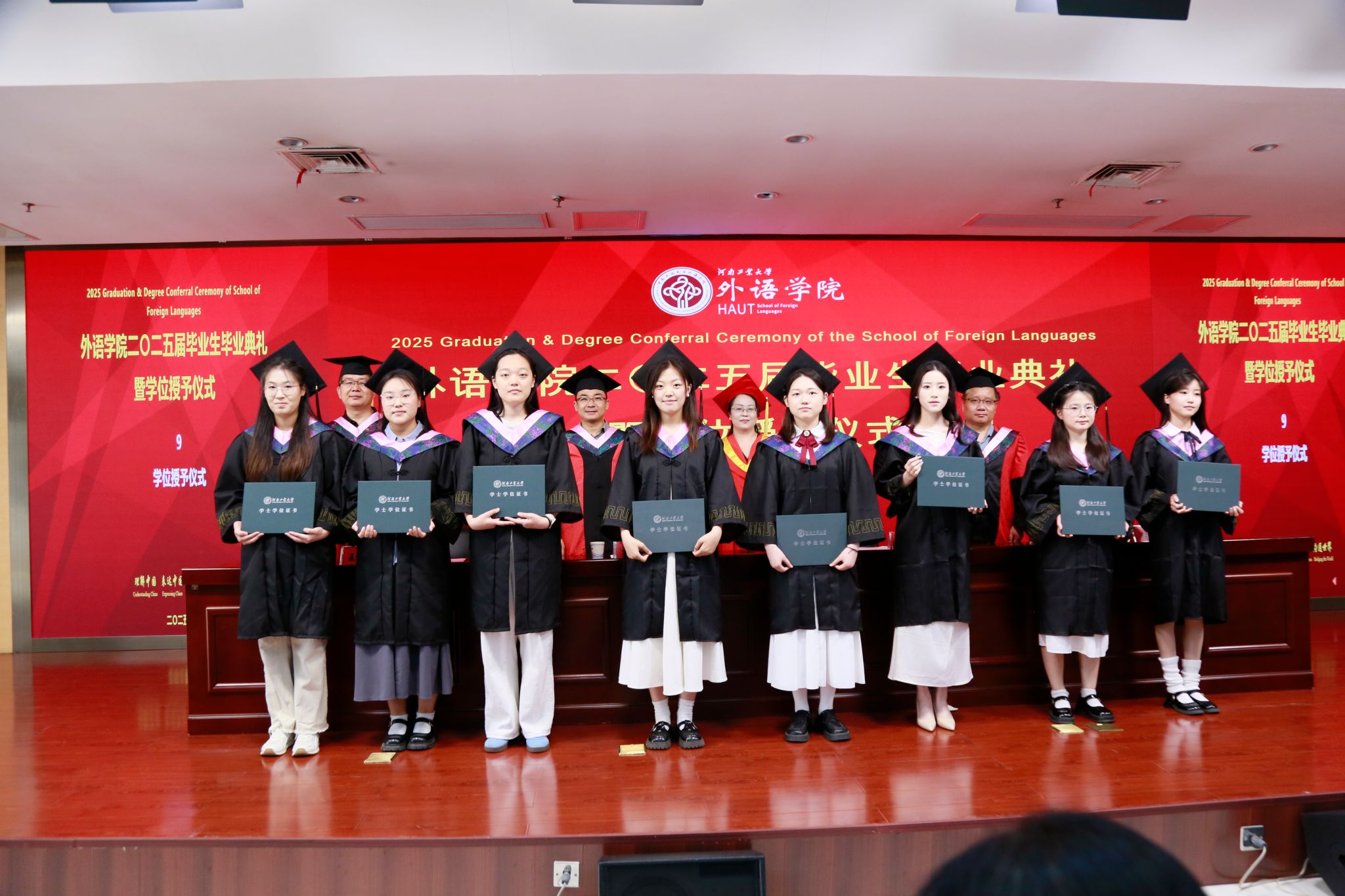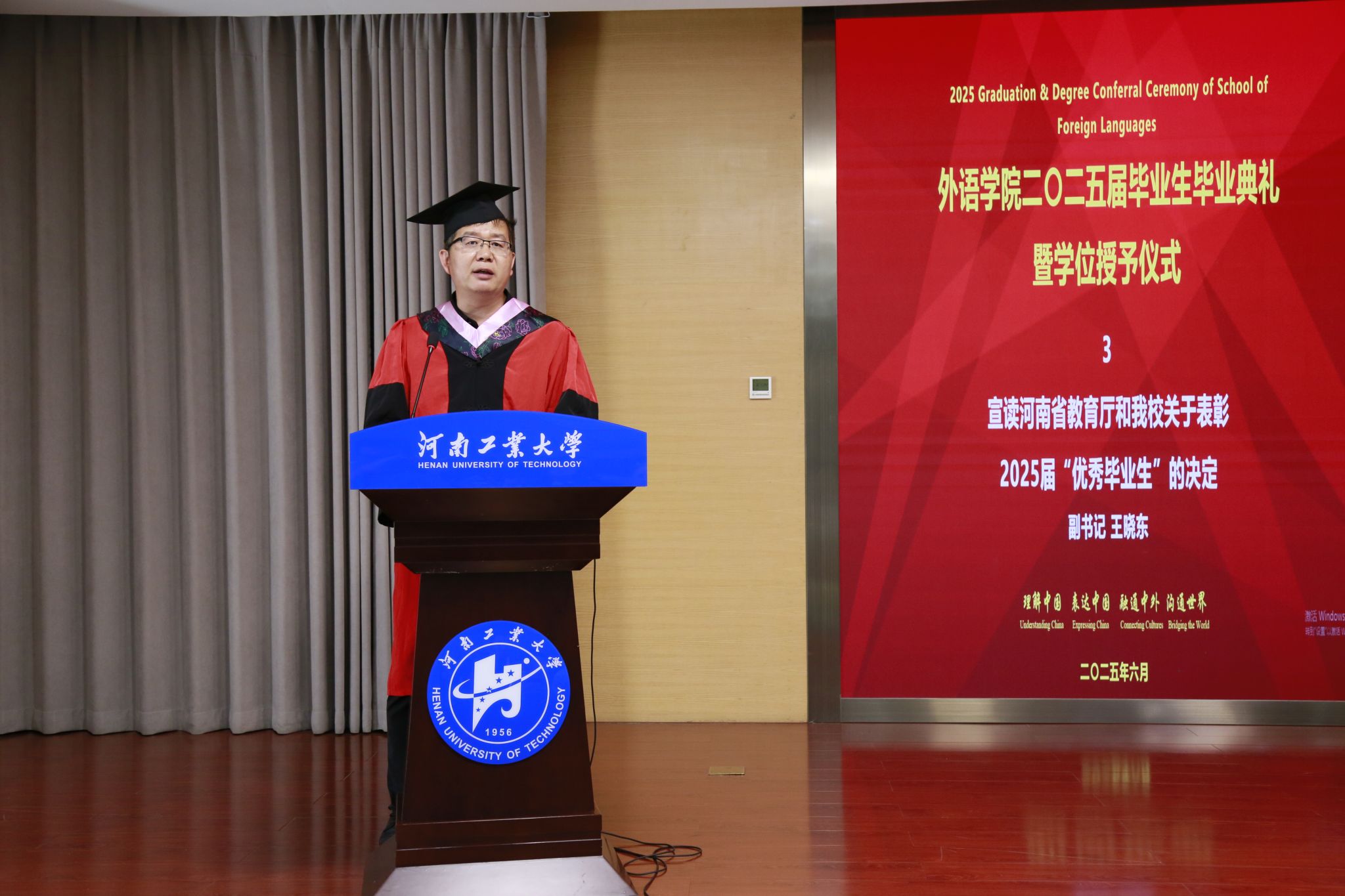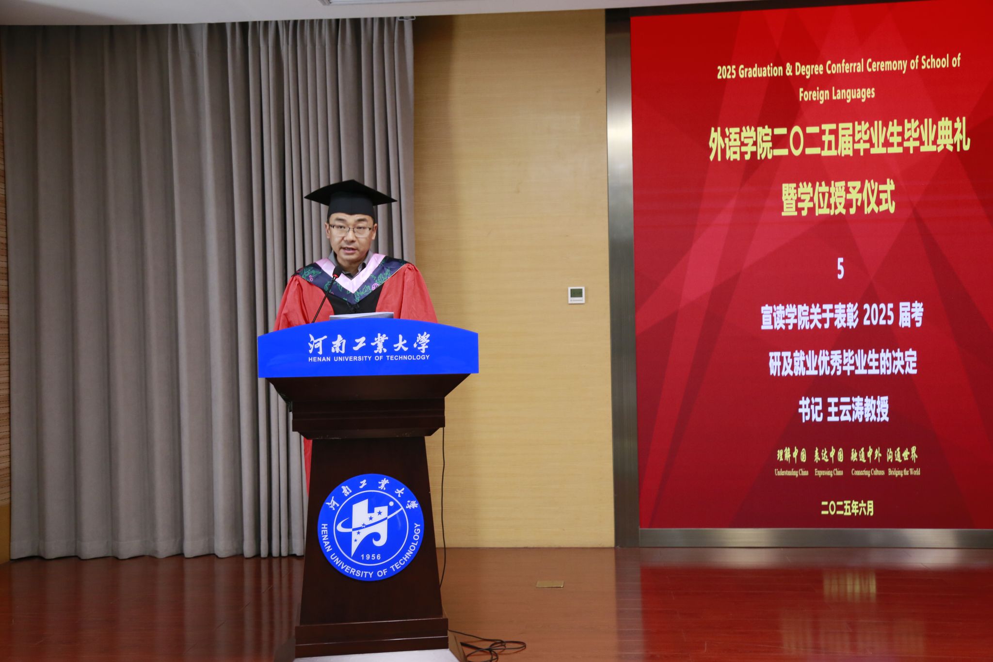 2025届毕业生基本情况及学位授予情况。副书记王晓东宣读表彰优秀毕业生的决定。出席典礼的领导和老师为受表彰的优秀毕业生颁发了荣誉证书。