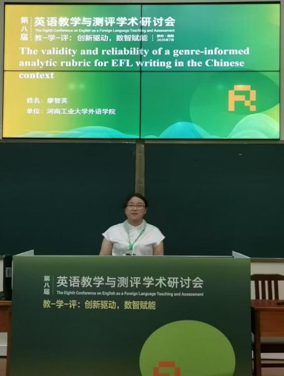教师廖智英参会并做了题为《 The Validity and Reliability of a Genre-based Analytic Scoring Rubric for EFL Writing in the Chinese Context》(基于体裁的分析型量表评价中国学生写作的信度和效度分析)的报告。