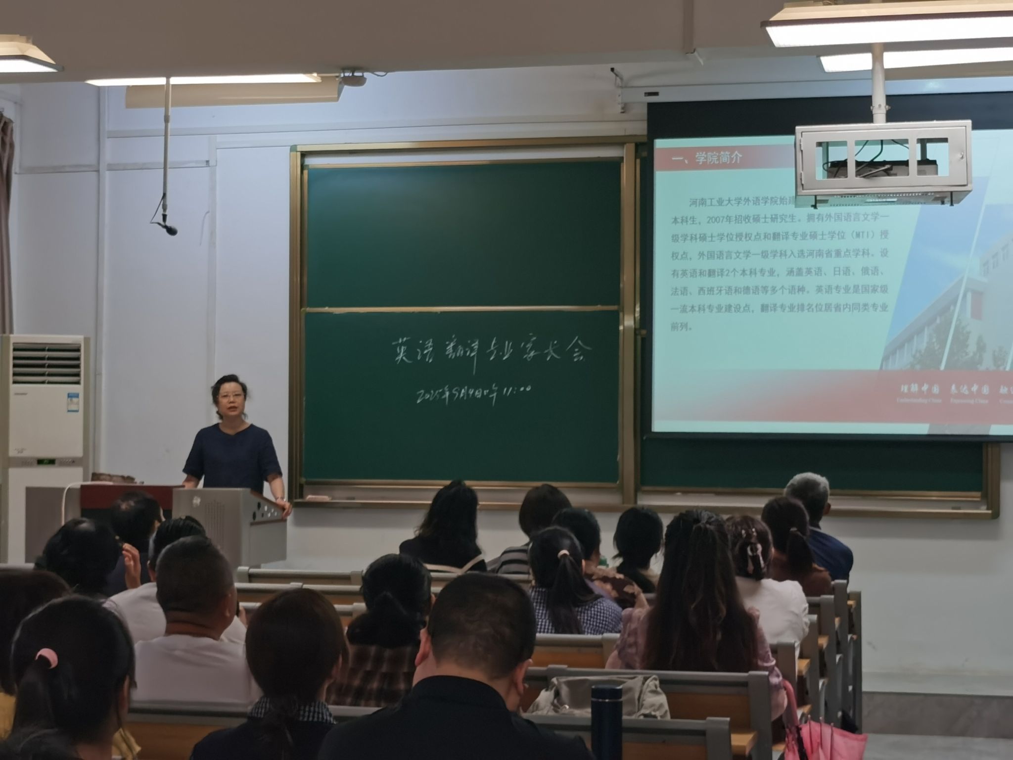 党委副书记王晓东、副院长葛丽萍、英语系主任康方、翻译系主任靳亚铭、学工办主任郭珊珊和新生家长参加了会议。会议由副书记王晓东主持。