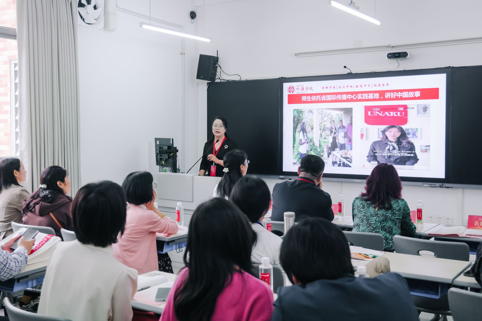 黄辉辉以《新时代高校外语教师“数字+国际传播”双素养协同发展研究与实践》为题作专题发言。她指出,在教育4.0时代,教育目标、信息媒介及组织形式发生了深刻变革。新时代高校外语教师应积极回应时代与国家之需,协同提升“数字+国际传播”素养,为国家培养兼具外语能力、数智能力和全球胜任力的高素质国际化外语人才。她详细阐释了外语教师“数字+国际传播”的双素养发展内涵体系,并结合星空体育