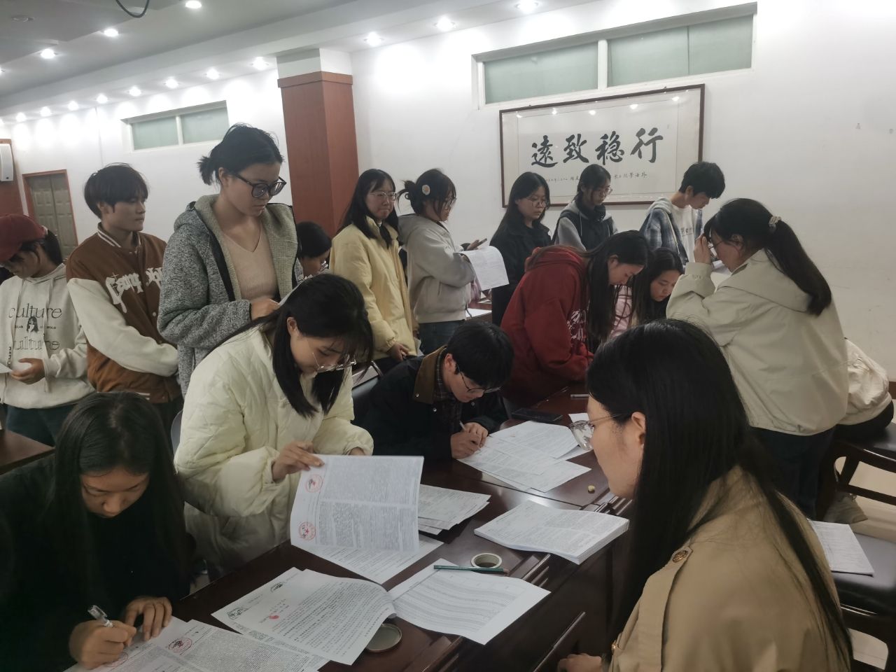 会上,郭珊珊宣读了《国家开发银行高校助学贷款借款合同》和《国家开发银行高校助学贷款承诺书》,重点介绍了合同签订要求及注意事项,并就“诚信申贷、按期还贷”的重要性,引导学生学会感恩、诚信做人、励志前行,希望同学们树立正确的人生观和学习态度,努力实现自己的人生目标。随后,申请助学贷款学生在资助助理的指导下,有序分组进行合同签订。