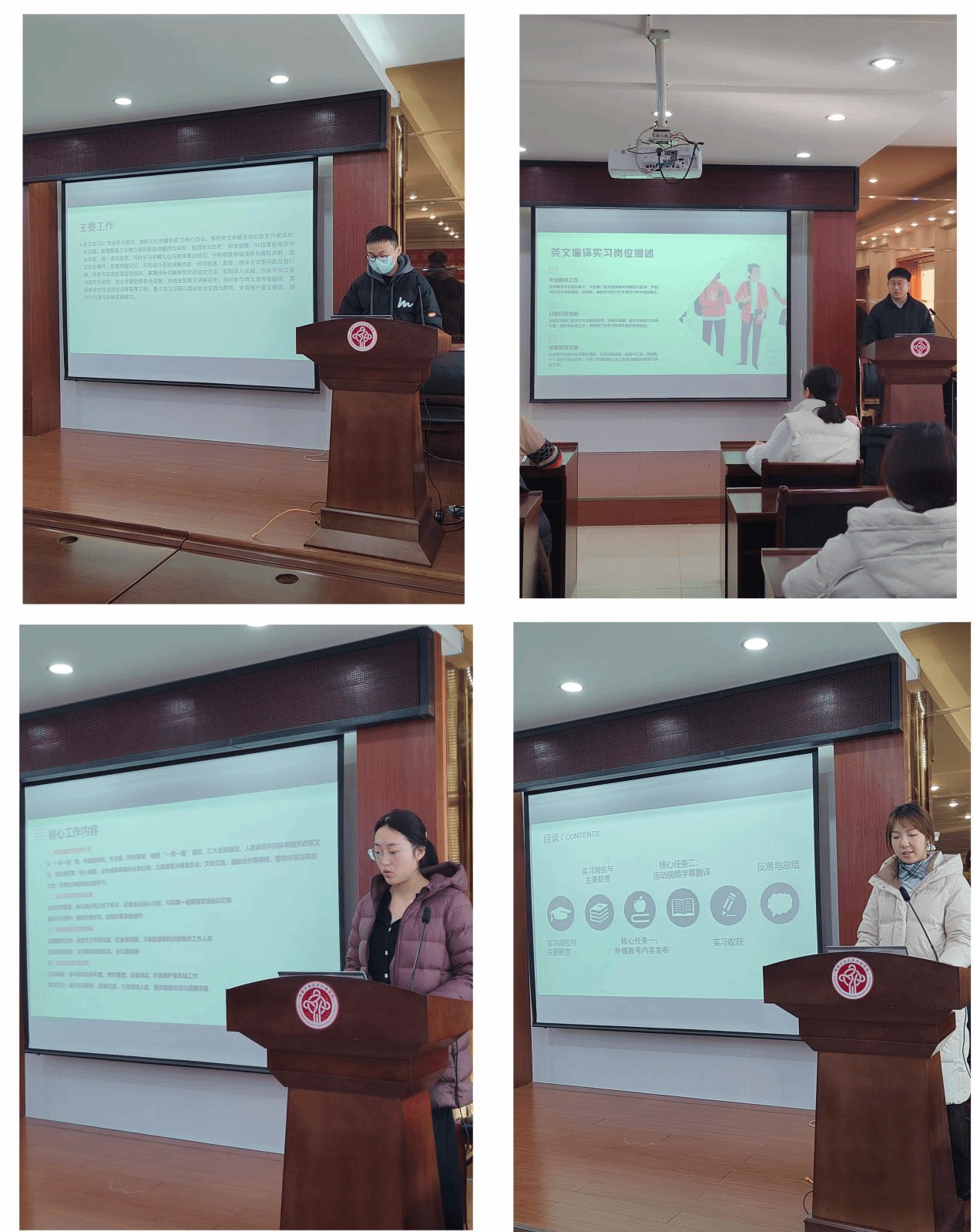 此次实习汇报会不仅为同学们提供了展示实习成果、交流实践经验的平台,更为后续的学习与职业发展指明了方向。同学们纷纷表示,将以此次汇报会为契机,认真总结实习经验,正视自身不足,在今后的学习与实践中再接再厉,不断提升专业能力,努力在翻译领域实现更大突破,以过硬的本领迎接未来的挑战。(撰稿:曹阳 摄影:曹阳 审校:沈国荣 审核:黄辉辉)