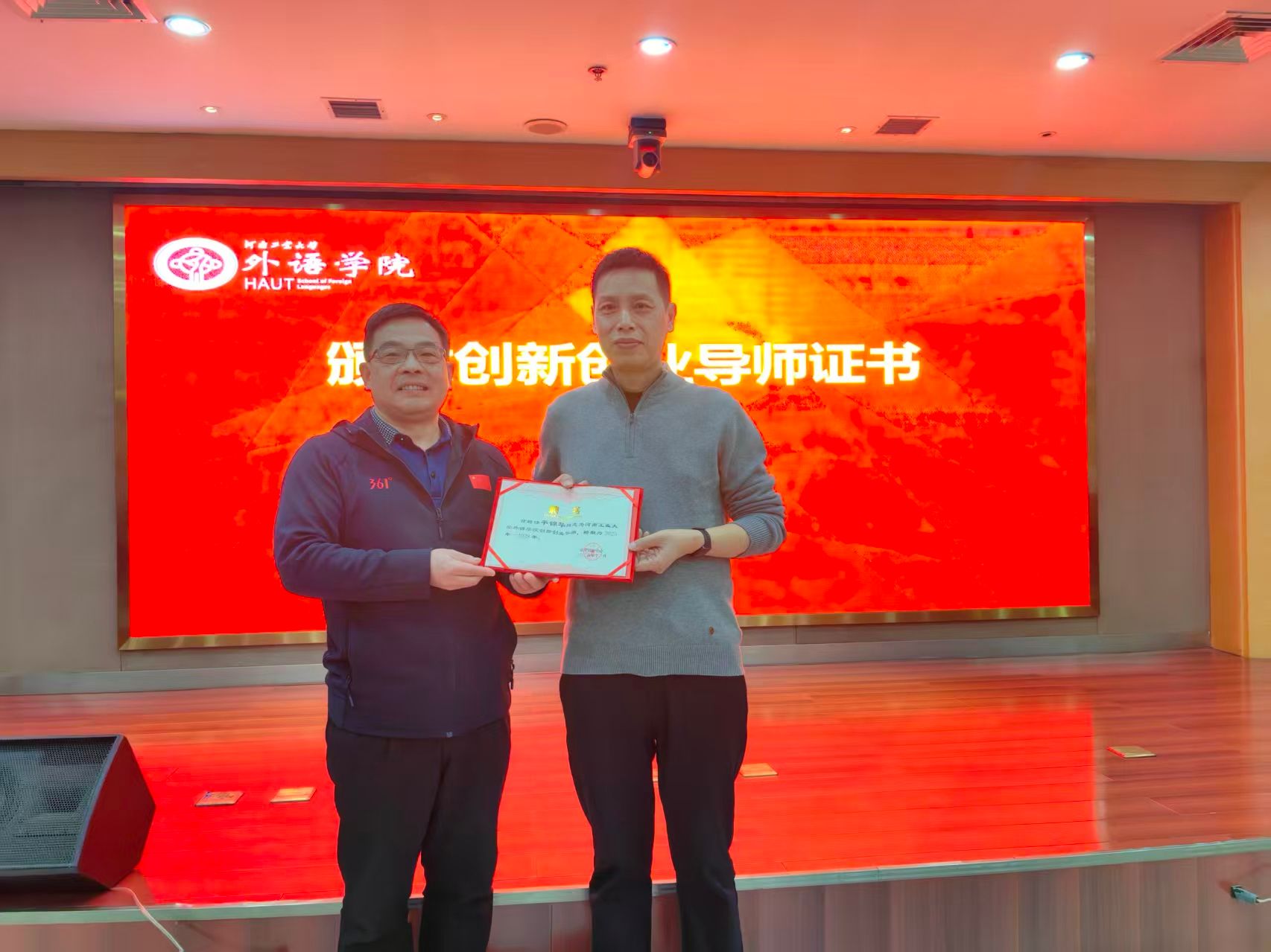 周志强主任向平锦华颁发创新创业导师证书