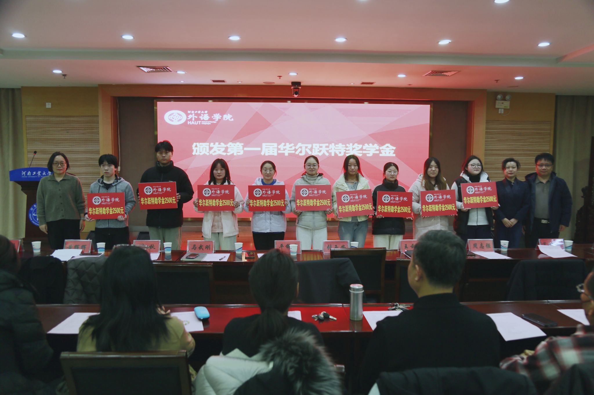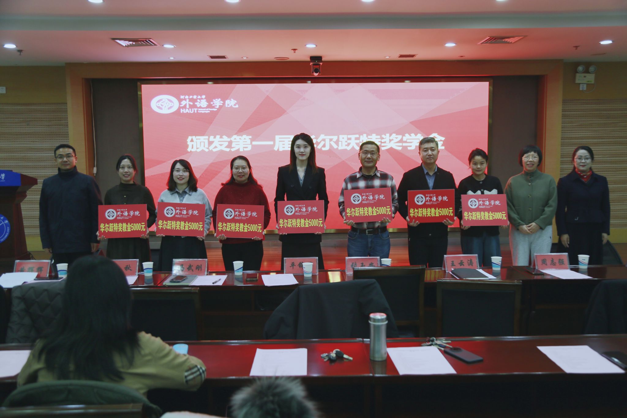 奖助学金和奖教金颁发仪式上,学生代表陈怡琳承诺将珍惜学习机会,努力成为优秀外语人才,用自己的成绩回报社会。教师代表曹阳表示,将始终坚守育人初心,深耕外语教学科研一线,努力工作,争取培育更多兼具专业能力与家国情怀的外语人才。