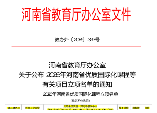 近日,河南省教育厅公布了2026年度河南省优质国际化课程立项名单。星空体育