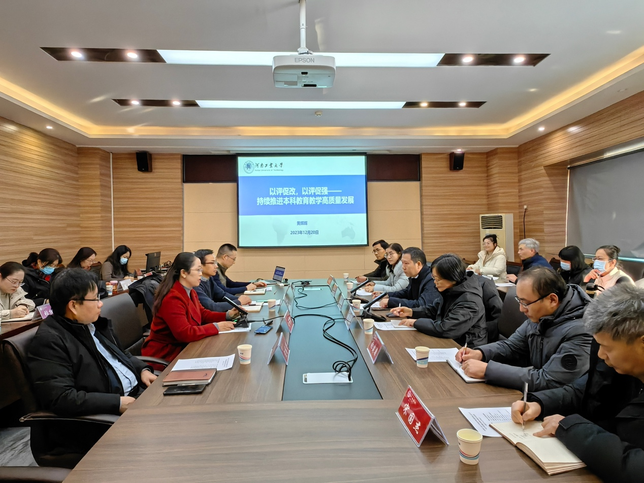 层面迎接审核评估的工作方案、十项核心重点工作及评估的总体成效等。黄辉辉强调,要深入理解本次审核评估的理念与指标内涵,熟悉评估方法和流程,以评估工作为契机深入推进教育教学改革,通过强有力的改革举措,以评促建、以评促改,切实提升教育教学水平,切实提高人才培养质量。加强组织领导,精心准备,广泛动员,扎扎实实做好每个环节的工作,并把评估的理念和精神扎扎实实落实在日常教学工作中。