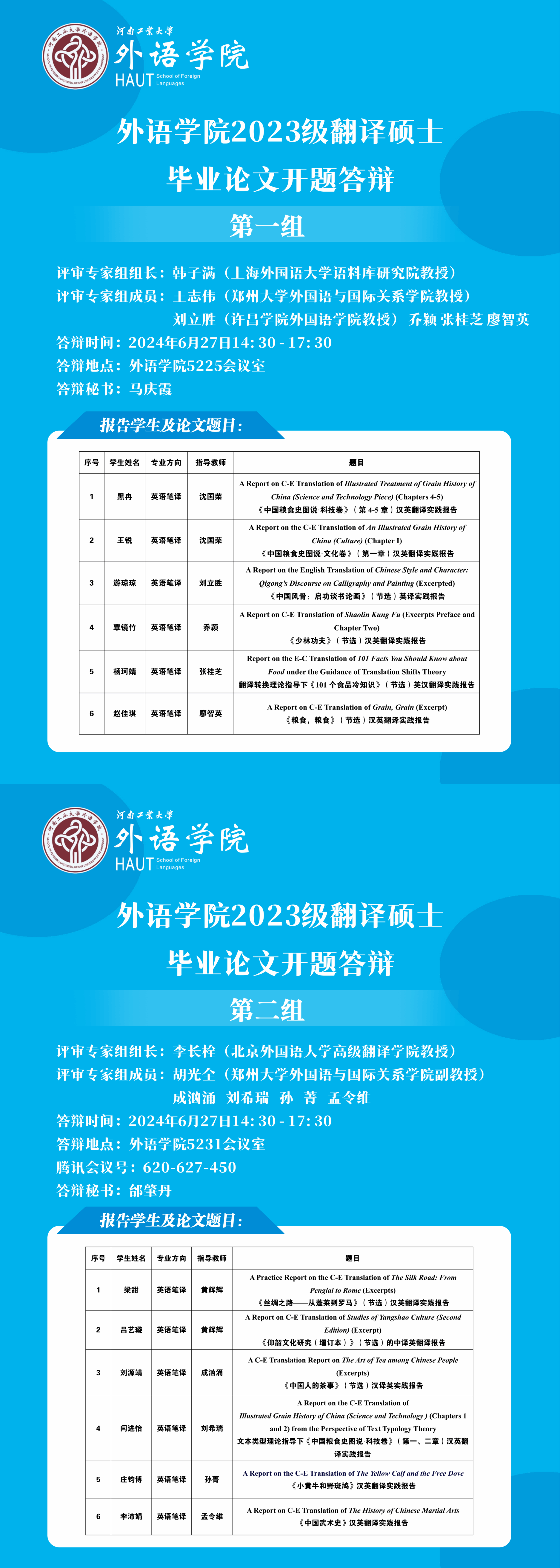 星空体育 2023级翻译硕士毕业论文开题答辩通知