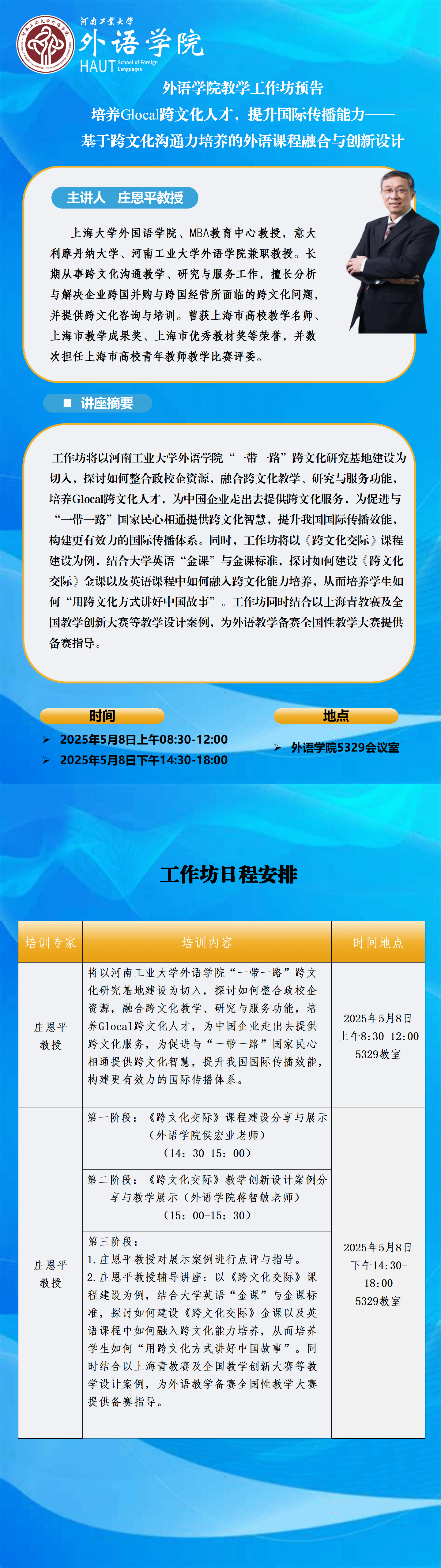 星空体育 教学工作坊预告:培养Glocal跨文化人才,提升国际传播能力 ——基于跨文化沟通力培养的外语课程融合与创新设计
