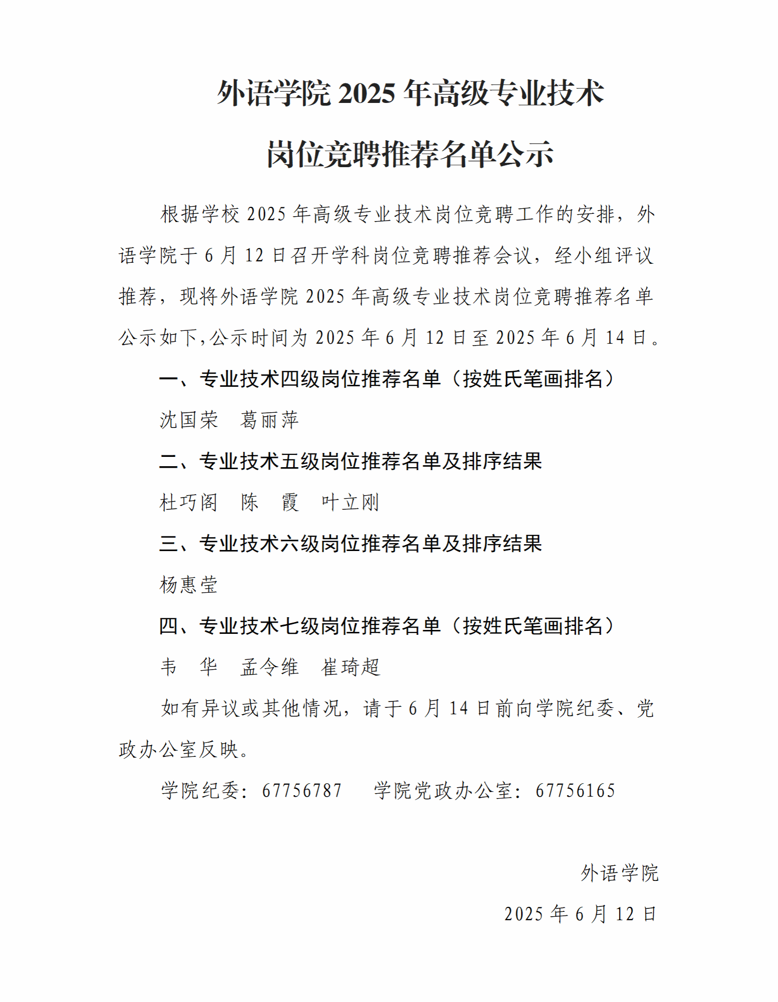 星空体育 2025年高级专业技术岗位竞聘推荐名单公示
