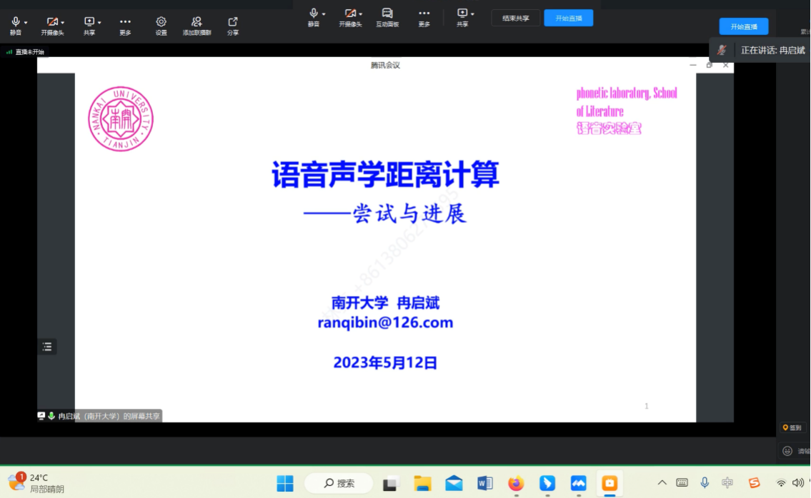 2023年5月12日,南开大学冉启斌教授应邀以《语言声学距离计算:尝试与进展》为题带来了一场精彩的学术讲座。来自星空体育