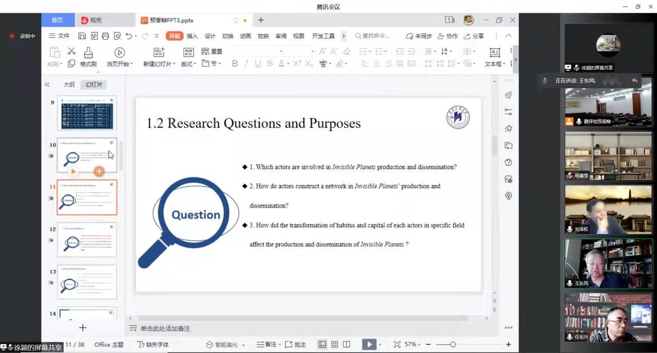 本次预答辩分为三组进行,由各组评审专家组组长主持,参加预答辩硕士研究生依次从论文选题、研究方法、框架结构等方面进行陈述,随后评审专家组针对同学们的论文框架、研究方法、学术价值、写作规范等方面提出针对性、建设性的修改意见,并希望同学们认真完善修改学位论文,力争交出一份满意的答卷。
