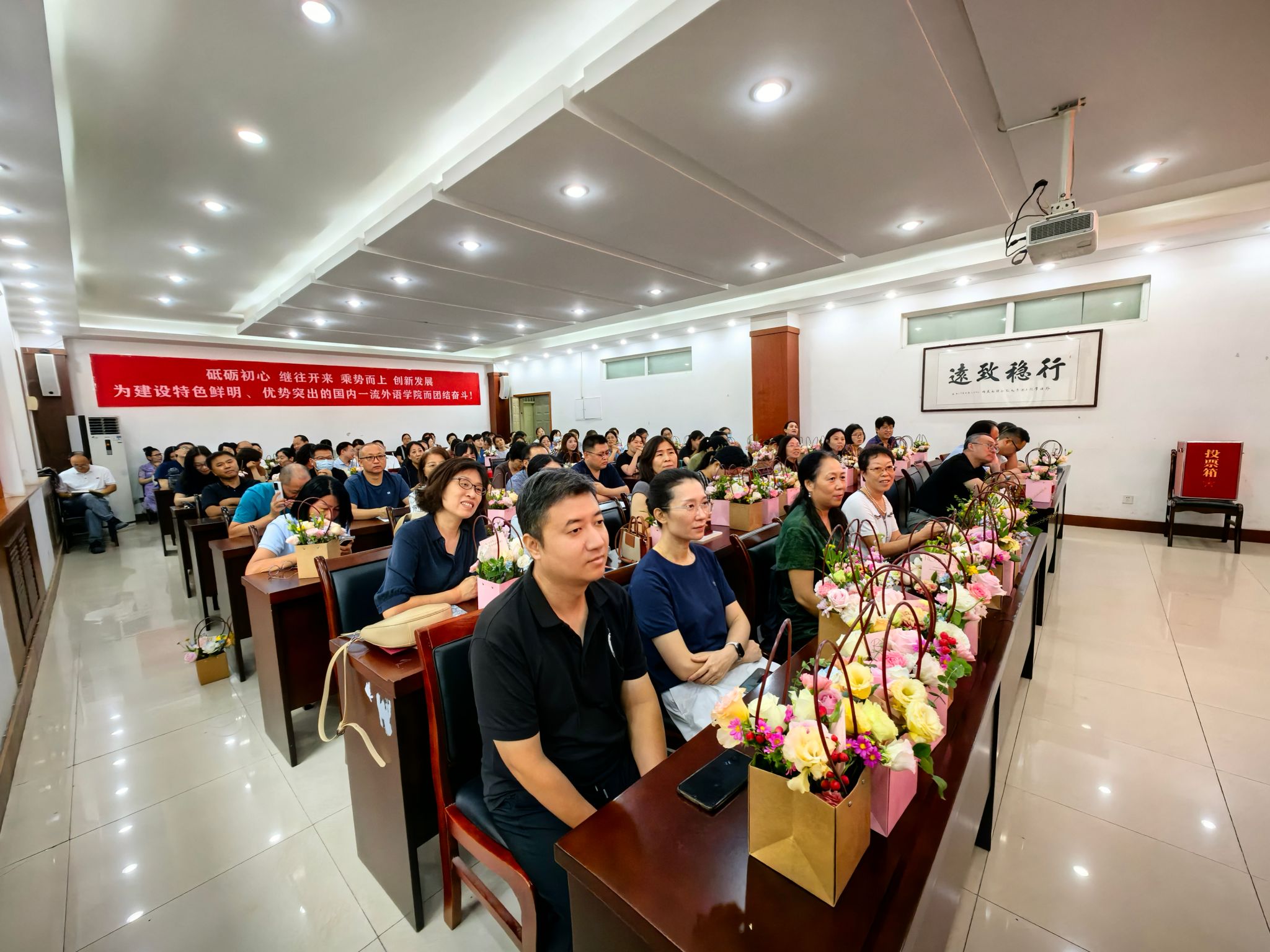 院长黄辉辉作总结讲话,她充分肯定了全院教职工在教学、科研、学生培养等各项工作中取得的成果,对广大教职工在工作中所展现出的团结协作精神表示由衷赞扬,对全院教职工的辛勤付出表示衷心感谢。她希望大家能够强化使命担当,立足岗位,继续发扬外语人直面问题、勇于挑战、攻坚克难的精神,抢抓机遇,紧紧围绕落实立德树人根本任务,提升育人质量,全面推进星空体育 高质量发展。