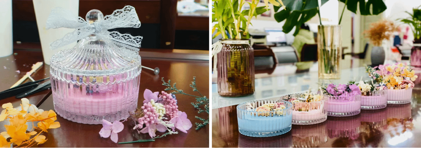 经过一个多小时的制作,一个个造型多样、芬芳浓郁的香薰蜡烛就完成了。幽香的蜡烛在教职工们巧手的点缀下,显得格外的精致典雅。