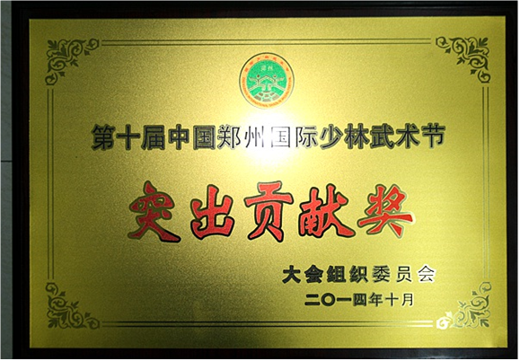 被授予第十届中国郑州少林武术节突出贡献奖