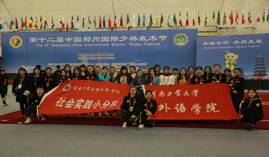 志愿服务。志愿服务活动是人才服务社会和锻炼专业能力的有力表现之一。组织学生参加商务部援外培训项目、“中国郑州国际少林武术节”、“中国(河南)国际投资贸易洽谈会志愿服务”、“中国郑开国际马拉松”的翻译志愿服务活动,学生在志愿服务活动中的表现得到组织方的一致好评。